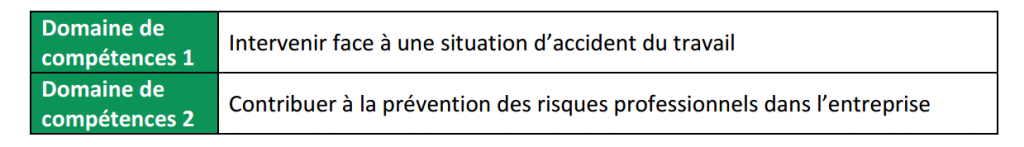 L’exercice de l’activité de SST nécessite la mise en œuvre de deux domaines de compétences :